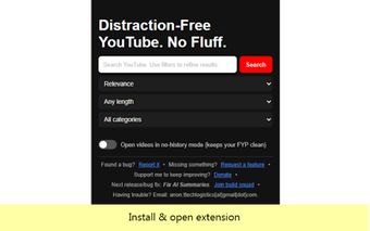 YouTube Search for Focus — это бесплатное расширение для Chrome, предназначенное для оптимизации вашего опыта поиска на YouTube и минимизации отвлекающих факторов. Этот инструмент позволяет пользователям искать видео, не переходя на полный сайт YouTube, тем самым экономя время и усилия. Он предлагает настраиваемые фильтры, такие как дата, продолжительность и тип, позволяя пользователям эффективно находить именно то, что им нужно. Пользователи также могут просматривать сгенерированные ИИ резюме видео, что позволяет быстро оценивать актуальность контента перед просмотром.